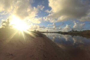 Certains jours, j’ai été étonnée de voir plus de profondeur dans la dimension des couleurs des paysages, des arbres, du ciel, de l’horizon. Comme si doucement un voile se levait de ma vision. Cela s’accentue à mesure du processus de détoxification. Le gris, le terne, s’efface. Je suis reconnaissante pour la beauté de la vie, l’opportunité de me réveiller pour un lever de soleil hamac/rivière/mer, l’opportunité d’apprendre à ralentir au milieu d’un monde frénétique, de ne pas poursuivre la prochaine peak expérience. M’inspirer des autres, pratiquer mon propre yoga, préparer des jus de fruits dont je n’avais jamais entendus parler (cacao), m’enthousiasmer à la vue de cosmétiques bio ou de miels locaux. Faire brûler du Breu Branco et son parfum d’agrumes, une résine blanche provenant d’un arbre sacré traditionnellement utilisé dans les tribus pour transmettre la connaissance aux plus jeunes, ouvre les portes de la mémoire. Voyager ne consiste pas à voir tous les « grands sites » en un tir groupé, guidés par le mental qui se plait à faire plus, voir plus, toujours plus. N’atteignant jamais satisfaction aucune. J’aime quand les jours deviennent comme une page blanche, car mon esprit peut rester curieux à l’idée d’accueillir les nouveaux défis et opportunités que le rythme de la vie déploie devant moi, tout en continuant à prêter attention à ce que j’accepte sur mes pages. Être connectée à la nature et apprendre de nouvelles choses ont été des motivations phares m’encourageant à poursuivre mon travail d’auto-observation.